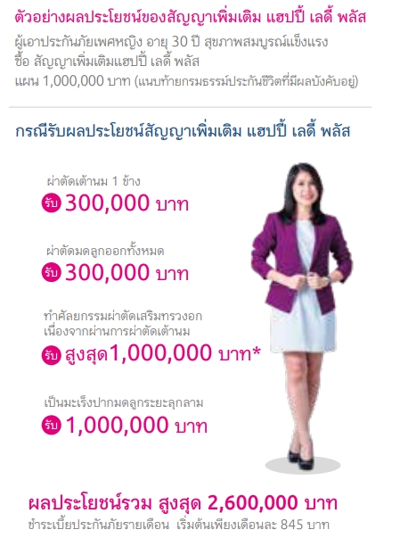 อายุ 11 ปี - 75 ปี ซื้อได้ ดูแลยาวถึง 81 ปี ลดหย่อนภาษีได้ เหมาจ่ายไซส์เล็ก ดูแลค่าห้องพัก Top Up จากสวัสดิการที่มี